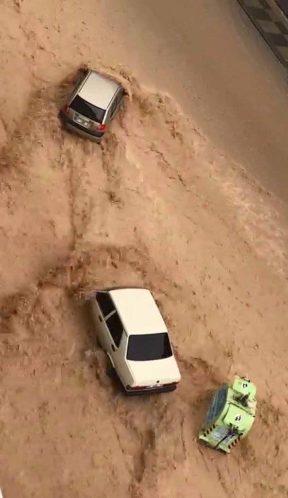 وقالت وسائل إعلام تركية إن فيضاناً في منطقة أكادير كوتلو، جرف العديد من السيارات، جعل السائقين يواجهون أوقاتًا عصيبة، بعد أن غمرت المياه الطرقات شوارع وسط المدينة.
